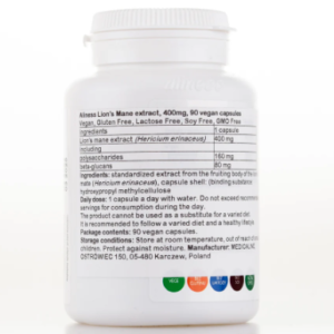 3 Months Supply of Lion’s Mane Mushroom Supplement Capsules UK, 400mg, 90 capsules of powder extract