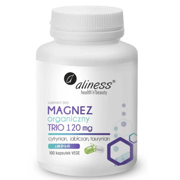 Magnesium Organic Trio is a modern food supplement containing three organic, very easily absorbable forms of magnesium: malate, citrate and taurate. Enriched with active vitamin B6 (P-5-P) for even better support of the nervous and muscular systems and maintaining electrolyte balance.
